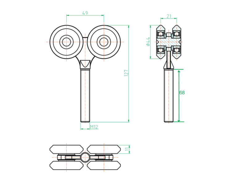 RD4254 Rola dubla pentru sina suspendata 42×54 mm