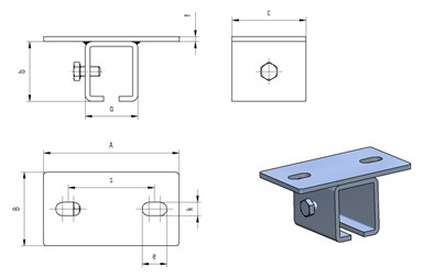 HS4254-304 Prindere superioara din inox pentru sina 42×54