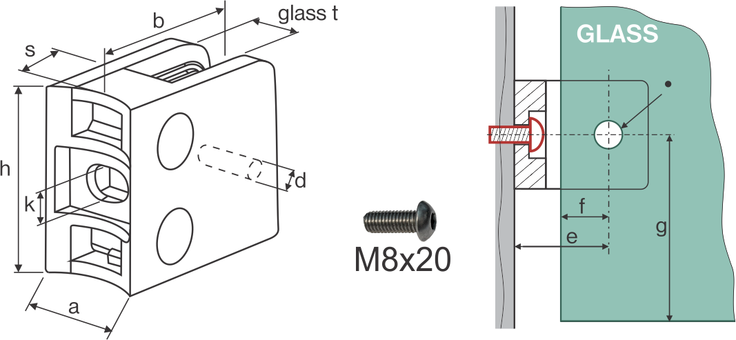 | Dimensiune: | b | h | a | s | d | k | glass t | e | f | g | Ø |
