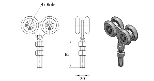 RD5767 Rola dubla pentru sina suspendata 42×54 mm